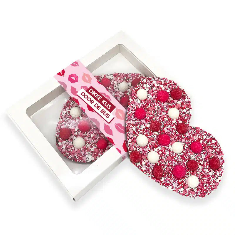 Verstuur iemand een kus door de bus door middel van dit heerlijke chocolade hart. De opdruk ‘Dikke kus door de brievenbus’ is geschikt voor allerlei gelegenheden, bijvoorbeeld als bedankje, voor de verjaardag van iemand of zomaar als spontaan cadeautje! Het fijne aan een brievenbuspakketje is dat de ontvanger niet thuis hoeft te zijn, het cadeautje ligt gewoon te wachten op de deurmat. Een extra grote verrassing dus!